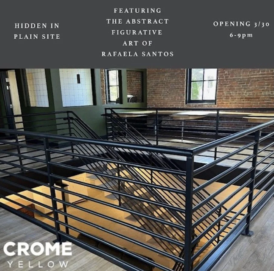 Hidden in Plain Site is a dual-purpose exhibition that celebrates the restoration by Max Crome of Crome Yellow Springs of the former First Baptist Church building founded as the Anti-Slavery Baptist Church and featuring the abstract figurative art of Rafaela Santos.